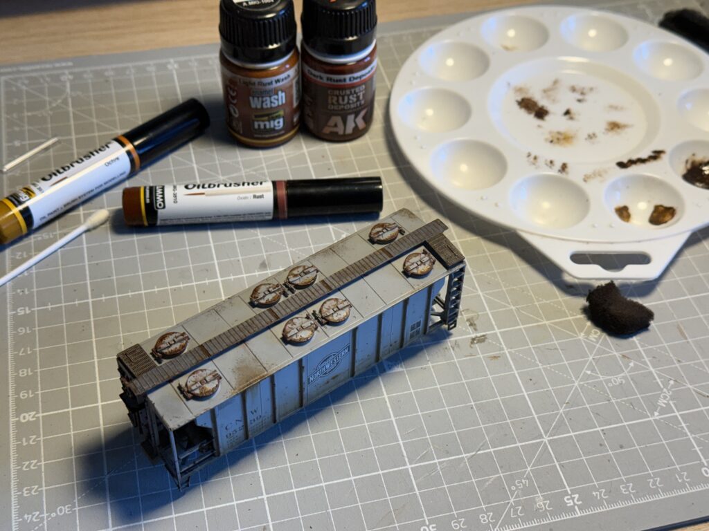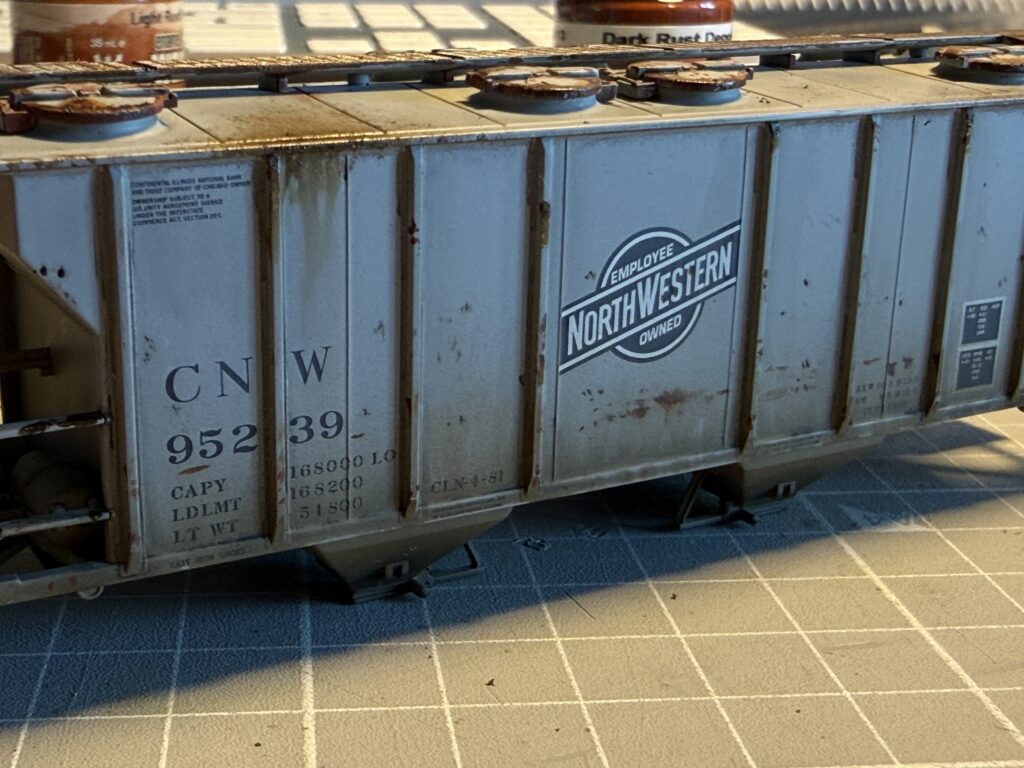 Before committing to weathering a $60 Tangent covered hopper, I decided to refine my skills on a cheaper car. I am used to weathering N scale rolling stock and have weathered many, but HO scale demands more attention to detail.