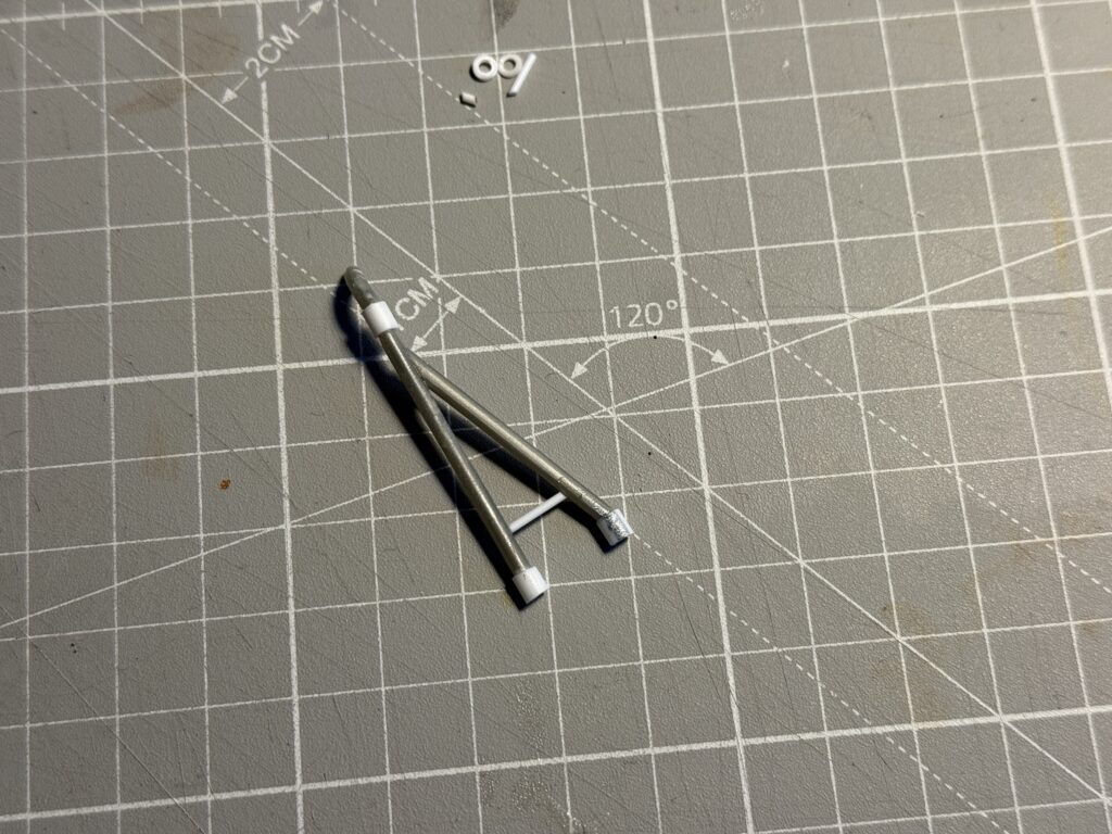 Afterwards, I painted the loading pipe using Vallejo Aluminum paint, I drilled a hole in the elevator wall and glued the pipe.